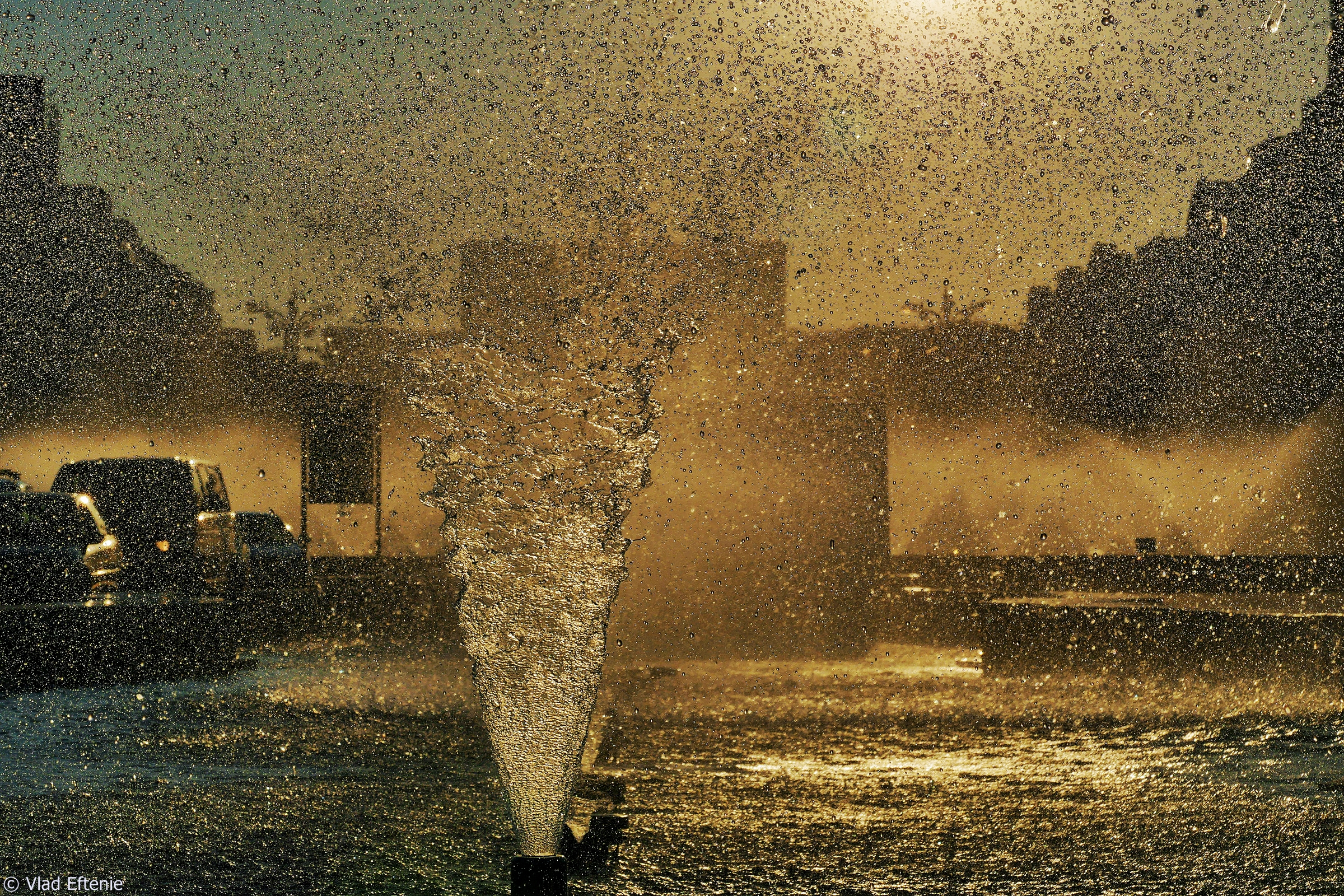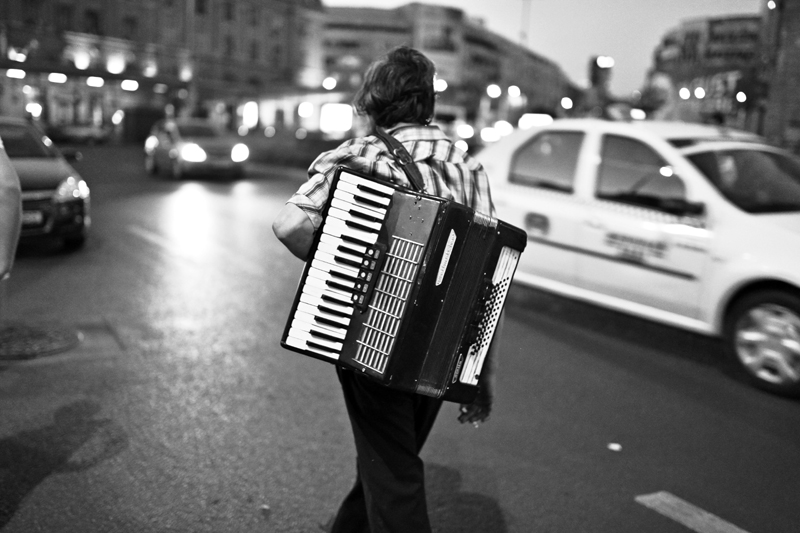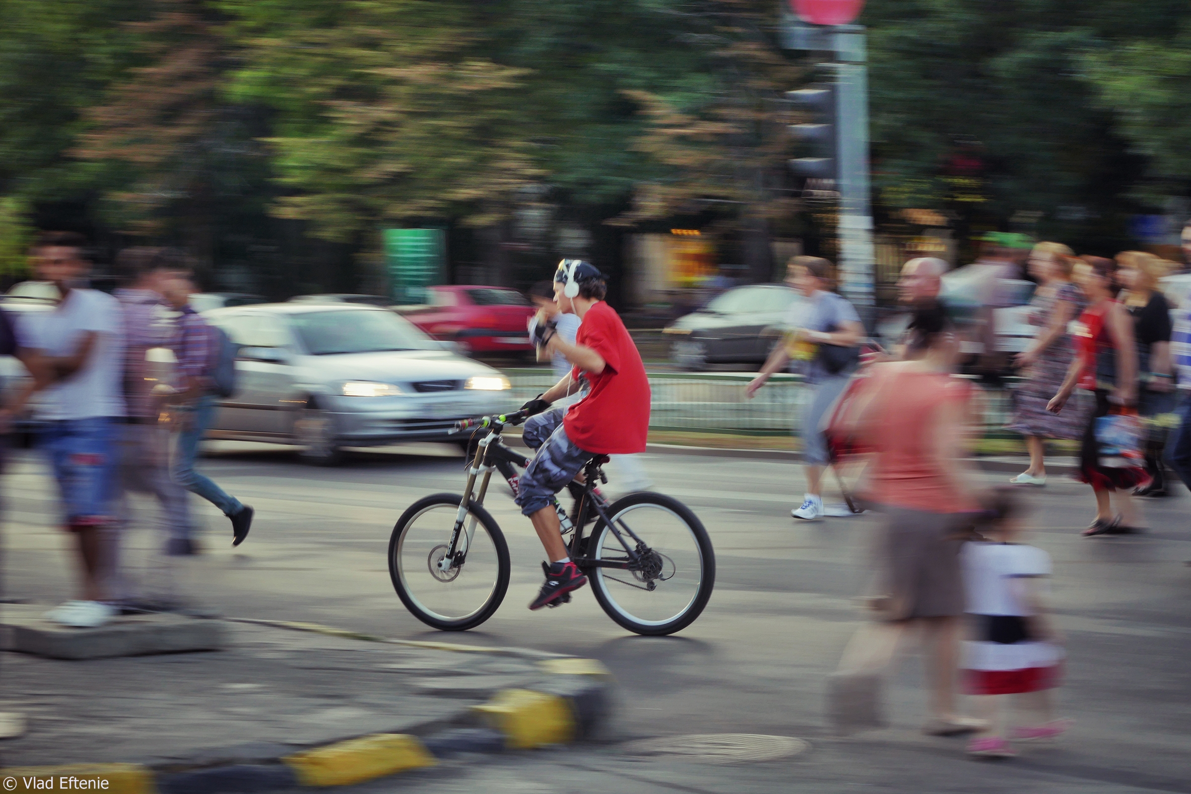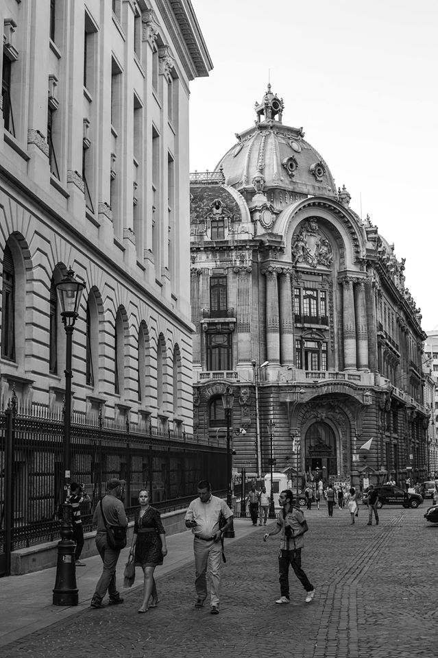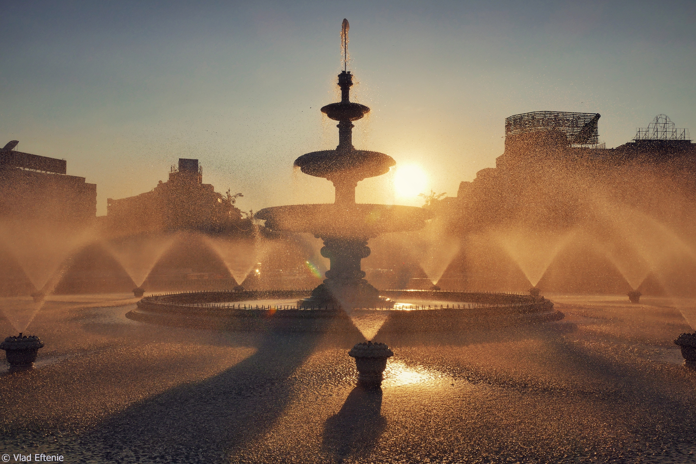 Vlad Eftenie Am sărbătorit ziua fotografiei prin muncă 🙂 întrucât am în teste un aparat care urmează a fi lansat, am făcut câteva sute de cadre deja, până la ora întâlnirii, de “încălzire”. Pentru că am ales ca loc de desfăşurare a turei foto zona Pieţei Unirii, încă de dimineaţa mi-am făcut temele şi am inspectat locul. Am reuşit chiar să ajung într-un punct înalt de observaţie şi să pot cuprinde cu privirea întreg ansamblul. Am ales Piaţa Unirii din mai multe motive. Este un loc cu valenţe fotografice multiple – loc al aglomerării, zona de importanţă centrală. Axul bulevardului Unirii- marcat de silueta Casei Poporului, propune jocul fântânilor. Staţia tramvaiului 32 este un loc aglomerat si te poti strecura printre oamenii aflaţi în mişcare. Parcul central presupune chiar abordarea peisajului urban de tip skyline. Zona din faţa McDonalds este locul probabil cel mai folosit – reper, pentru întâlniri. Celelalte două fronturi cu magazine sunt şi ele foarte aglomerate, locuri numai bune pentru a fotografia oameni. Îmi place să organizez grupuri de lucru pentru a exersa fotografia street, o fac de câţiva ani cu ocazia workshopurilor pe care le susţin, mai mereu aducând un element experimental. Fotografia de stradă se face în mod normal solitar, pentru ca fotograful să poate fi discret. În grup, e mai dificil. Am întâmpinat această aparenţă constrângere mizând pe comunicare, pe impărtaşirea ideilor, sfaturilor, părerilor, indicaţiilor, răspunzând la orice întrebare – mizând pe încurajarea gestului fotografic autentic ce poate fi apoi exersat desigur solitar. Am reuşit să parcurgem zona din faţa magazinului Unirea, trecând pe la fântâni, prin staţia tramvaiului 32, pe latura vestică a frontului construit – cu maxima aglomeraţie la ora respectivă, ieşind în parc – în două ore şi jumătate. Grupul a interactionat pozitiv cu oamenii cu care am stabilit un contact verbal, atmosfera de voie bună a fost la ea acasă. Am demontat mitul conform căruia fotografiatul pe stradă e periculos şi cere măsuri speciale de camuflare sau de comunicare. Totul a decurs normal, culminând cu un shooting propus unor tineri, în parc, care işi făceau poze. Le-a spus că au ocazia de a fi pozaţi de câţiva zeci de fotografi talentaţi şi au acceptat jocul imediat.