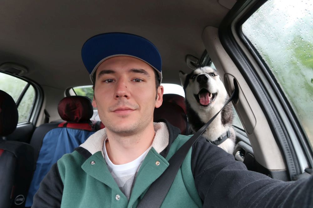 De asemenea, l-am luat şi pe al meu patruped la o tura în jurul blocului pe role: