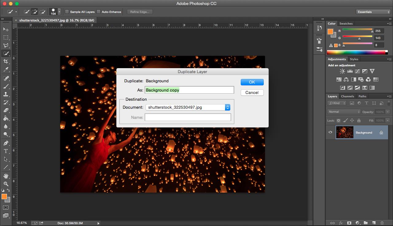Deschide imaginea in Photoshop si salveaza o alta copie de backup. Apoi, fa un layer duplicat ca sa poti vedea clar diferentele dintre fotografia originala si celelalte versiuni. De asemenea, lucrul pe layere intotdeauna te ajuta, pentru ca in loc sa fi nevoit (in caz ca gresesti ceva) sa iei lucrurile de la inceput, poti doar sa modifici layer-ul respectiv si poti sa faci si alte modificari fotografiei, mai tarziu.