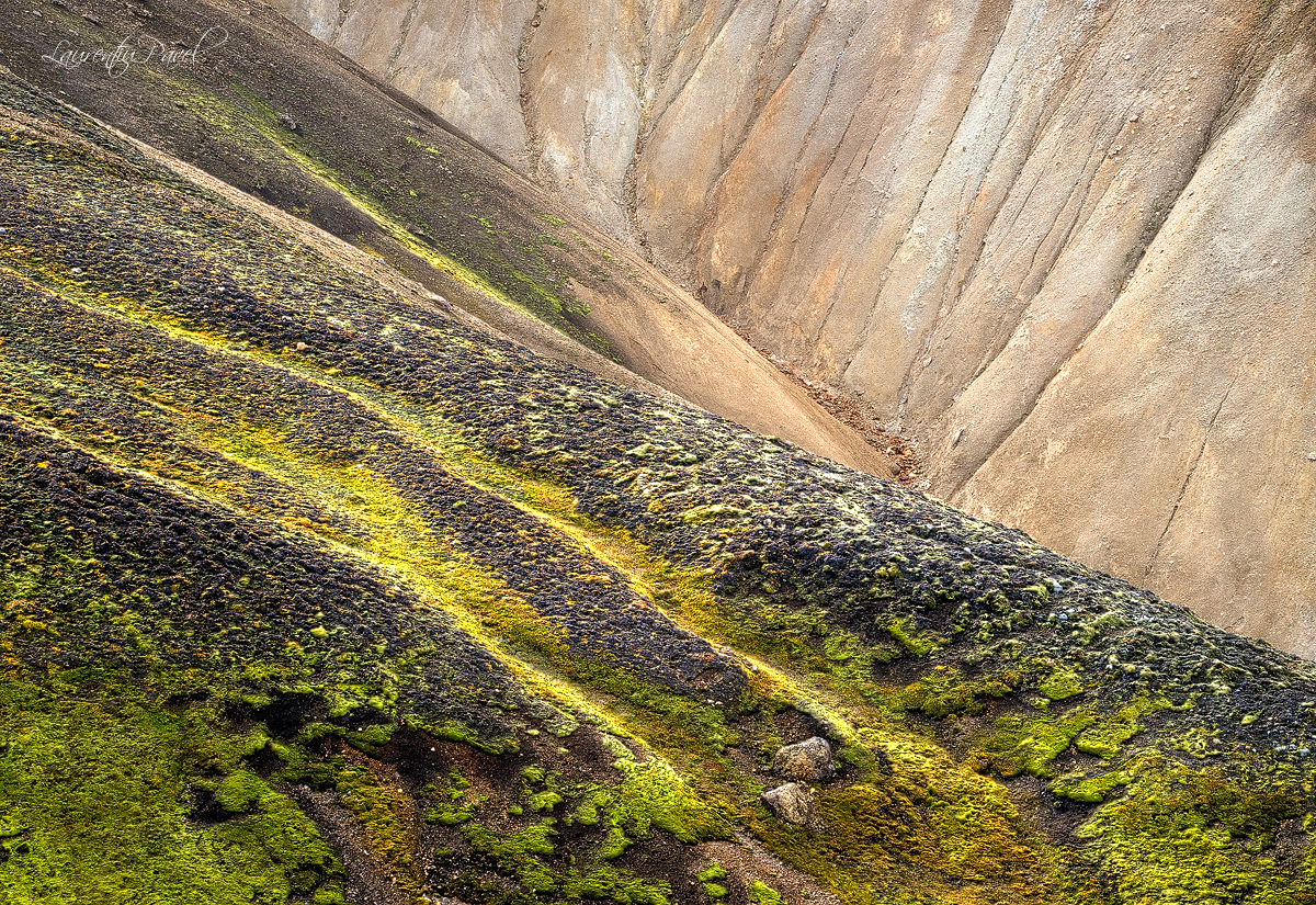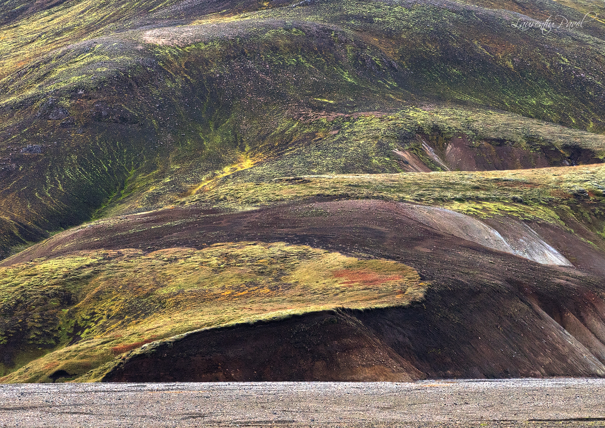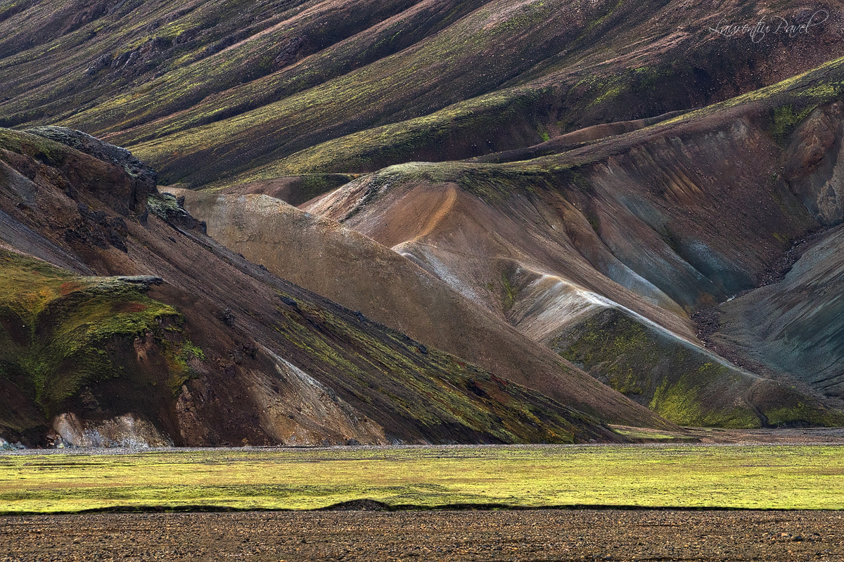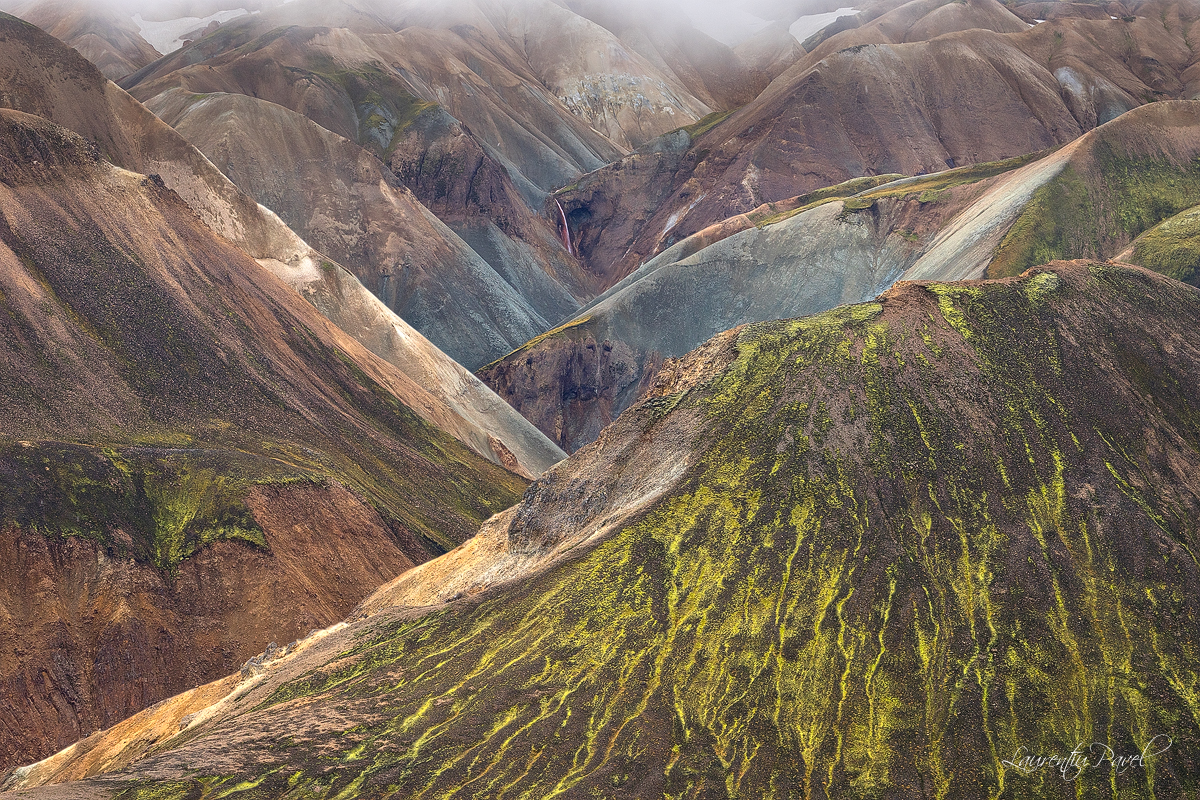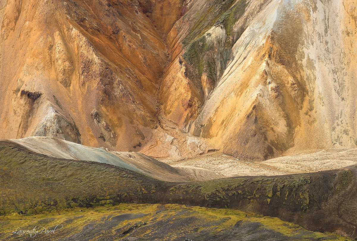 Planul inițial era să stăm cât mai mult în interiorul Islandei. Ultima mea vizită acolo a fost în 2014, când după 70 km parcurși în două zile pe bicicletă, pe teren accidentat și cu vreo 12 râuri trecute, am ajuns la Landmannalaugar, unul din locurile speciale de pe insulă. Asta avea deci să fie prima oprire. Am luat-o pentru siguranță pe partea mai ușoară, adică aia fără râuri și-am ajuns cu bine pe noapte. A doua zi, de dimineață, ne-am și pornit să explorăm fotografic zona. La un moment dat m-a sunat Aura să mă întrebe dacă lui Laurențiu i-a căzut mandibula după ce a văzut cum arată locul. Landmannalaugar, parte a rezervației naturale Fjallabak, e aparte pentru că e multicolor.
