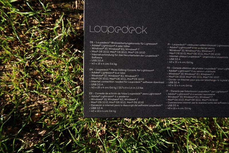 Cutia este livrată într-un pachet alb, inscripționat cu fontul Loupedeck. Ambalajul este simplu, cu design premium. Specificațiile complete sunt prezente pe spatele cutiei.