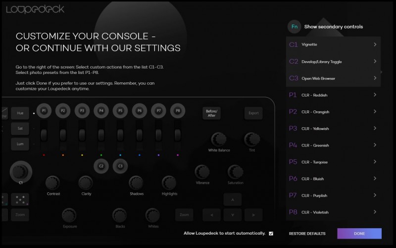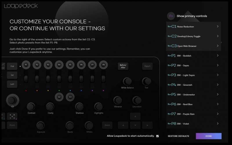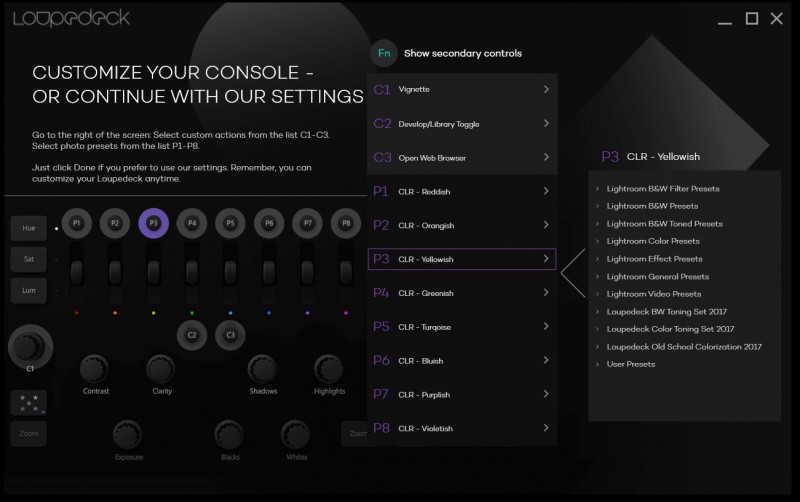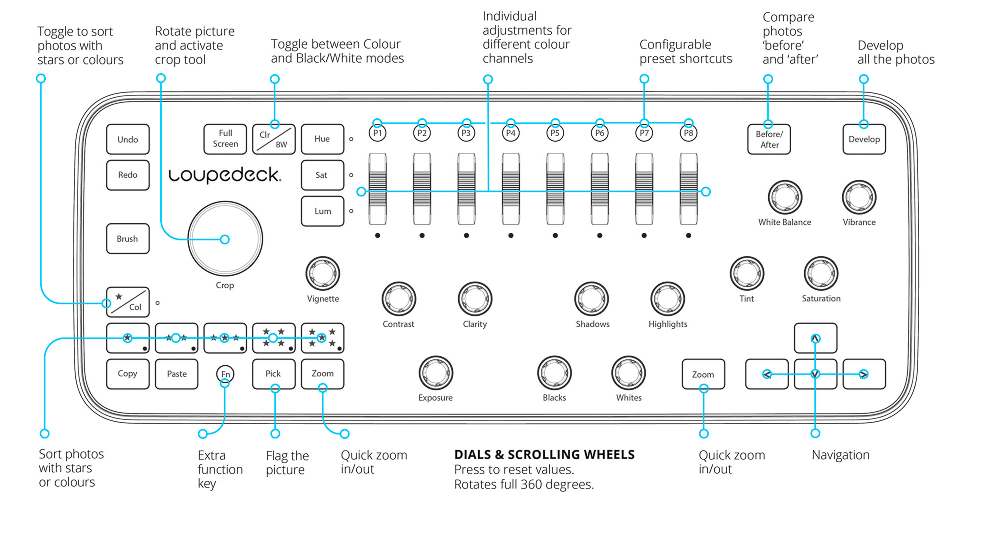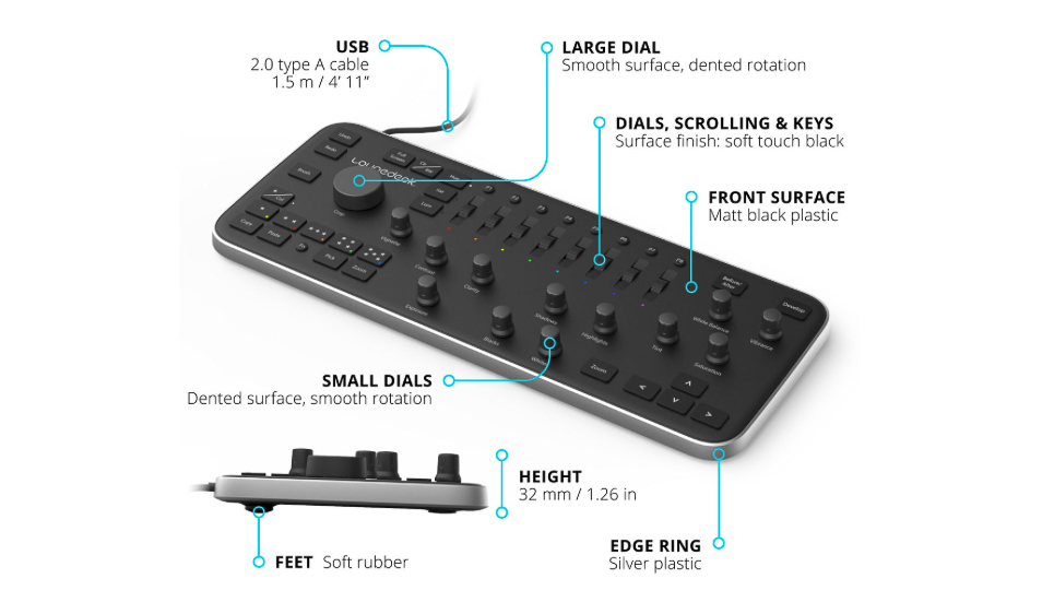 Loupedeck este o consolă premium de procesare pentru persoanele se bazează mult pe aplicația Lightroom. Cu un design mat și slim, aceasta oferă suficiente controale fizice pentru a putea controla multiple funcții din Lightroom, scutind astfel utilizatorul de folosirea tastaturii, dar nu și a mouseului. Interfața software este ușor de folosit, aceasta având o structură grafică simplă, pentru un proces ușor de mapare a funcțiilor pe butoanele dorite.