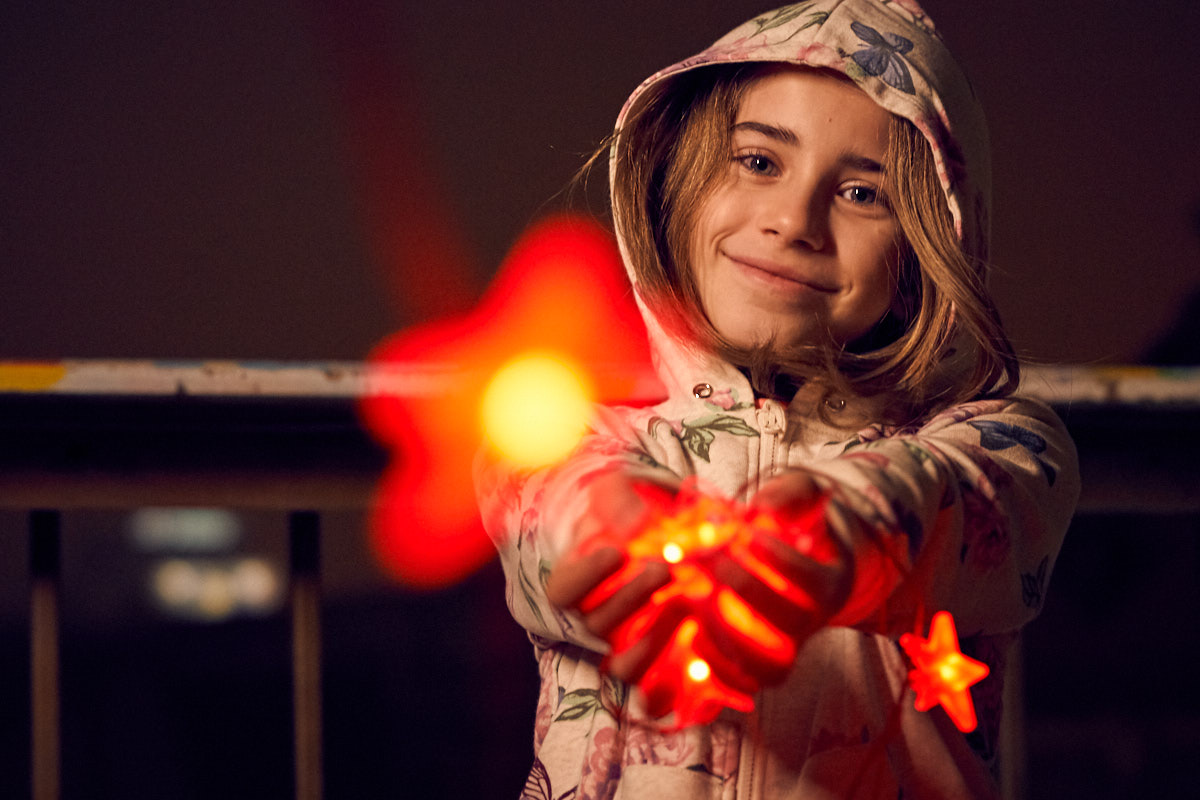 Vorbind de Crăciun, o sursă de lumină ușor accesibilă (și, de asemenea, o sursă pentru un efect bokeh frumos) sunt micile luminițe de Crăciun pe care le avem cu toții în casă. Pentru siguranța subiectului meu am folosit luminile cu LED-uri care sunt alimentate de la bateriile de 1,5 V, și nu de la prize. Așează luminile atât în fața, cât și în spatele subiectului pentru un efect de adâncime mai pronunțat.