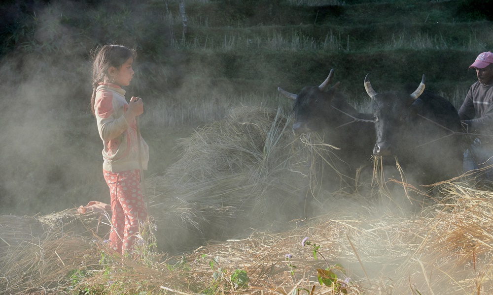 Având propriul autocar vine cu avantajul de a te opri oricând dorești, și așa am ajuns să admirăm și fotografiem culturile de orez lucrate cu pluguri trase de boi, culturi plasate în terase minunat încadrate de muntii înverziți cu creste înfricoșator de spectaculare și înzăpezite.