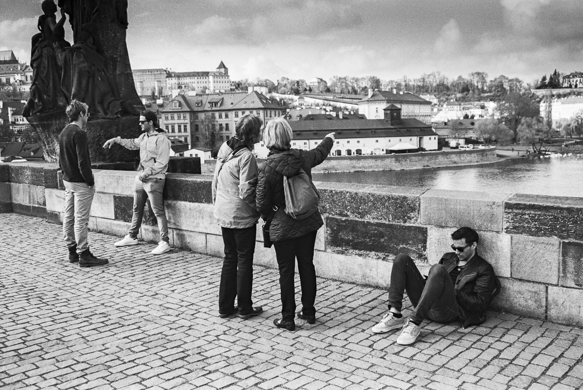 “Praga, la diateza reflexivă. Fotograful inițiază acțiunea și tot el o suferă, o trăiește. „Orașul de Aur”, creionat discret și extrem de personal. O călătorie interioară, mai coborâtă în amănunt la Dan Moruzan, ușor mai generalistă la Oliver Merce. Imaginile reușesc să evite clișeele exact cât e necesar, fără a uita, aproape imperceptibil, de câteva dintre amprentele locului (Podul Carol, Vltava, Orologiul), în lipsa cărora metropola ar rămâne cu personalitatea știrbită. O selecție unitară și inspirată, inclusiv din punctul de vedere al exprimării plastice, un alb-negru pe film, echilibrat și linistitor, fără contraste puternice și tonuri grave”. (Florin Șipoș, mondorama.ro)