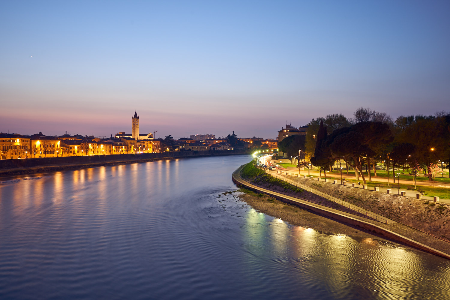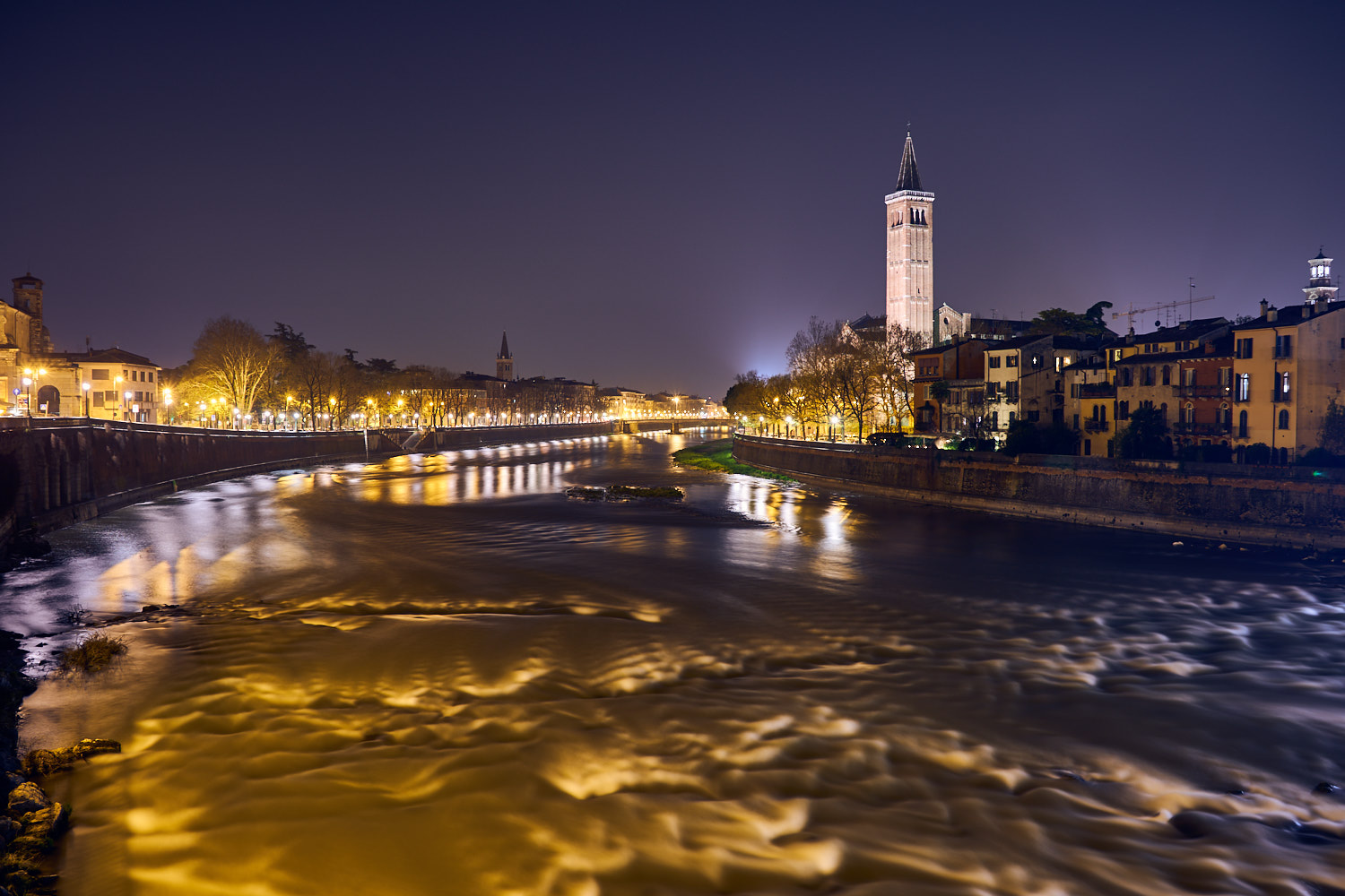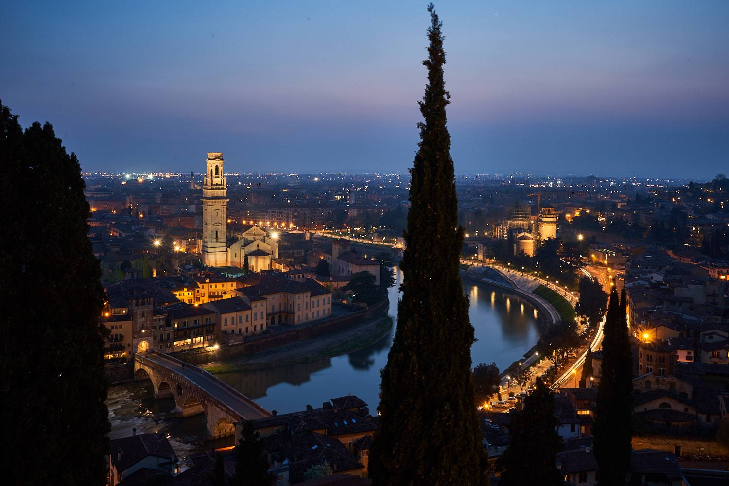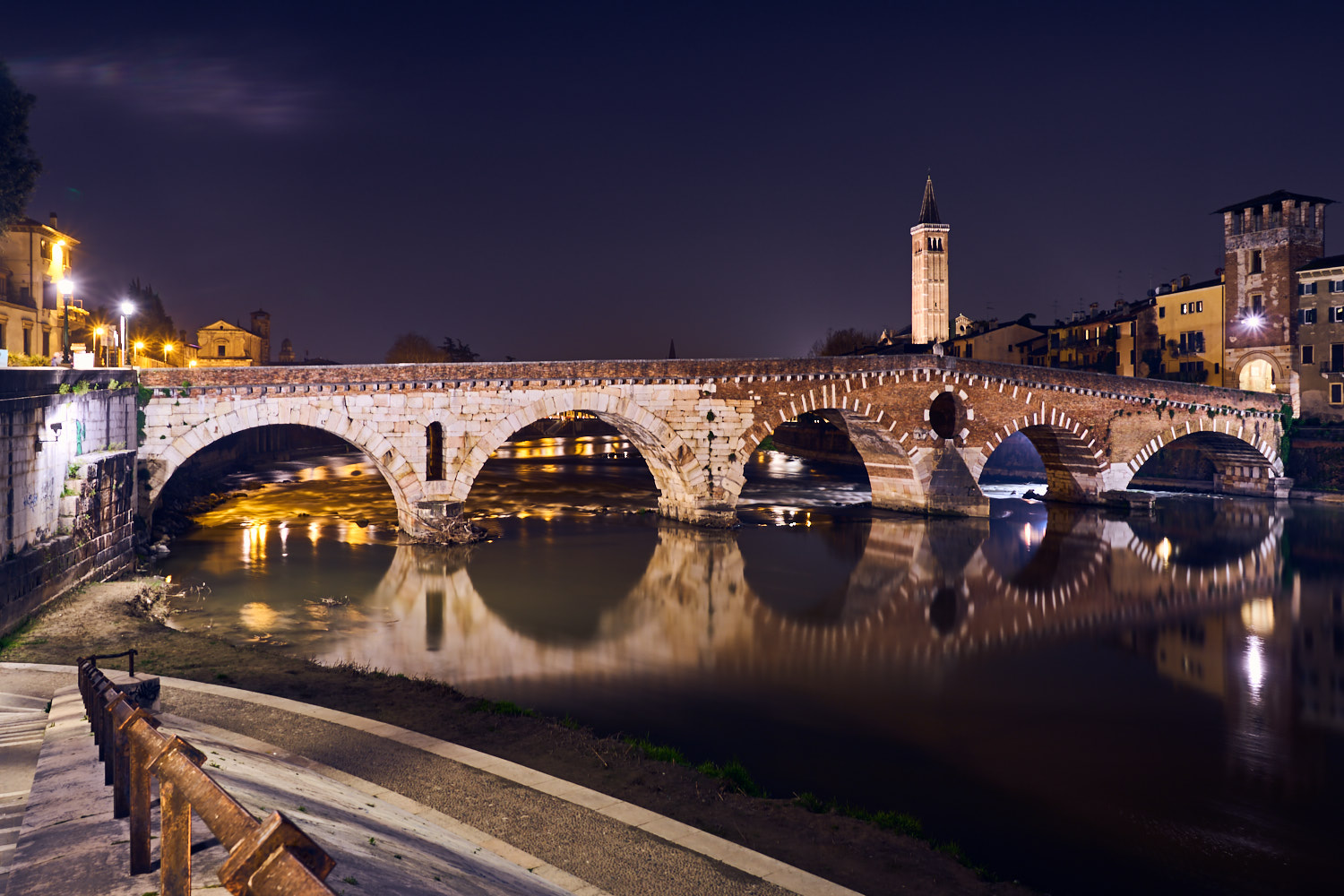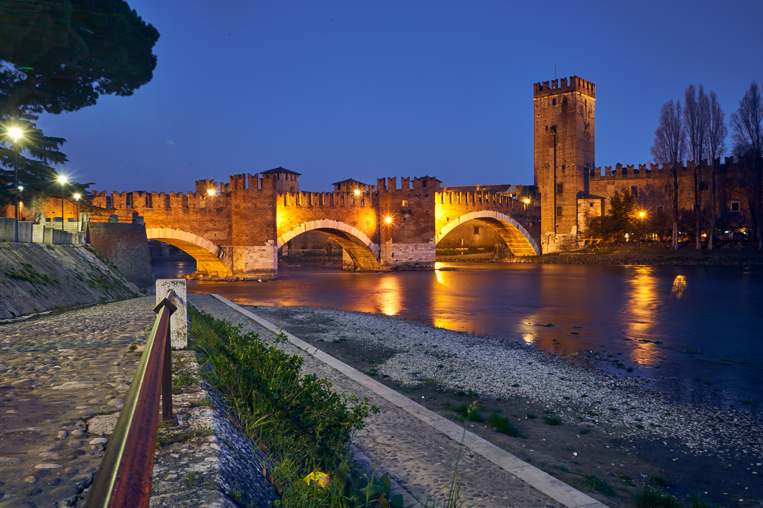 Continuam cu un peisaj de seara Castel Vecchio Verona la ISO 5000, tras din mana