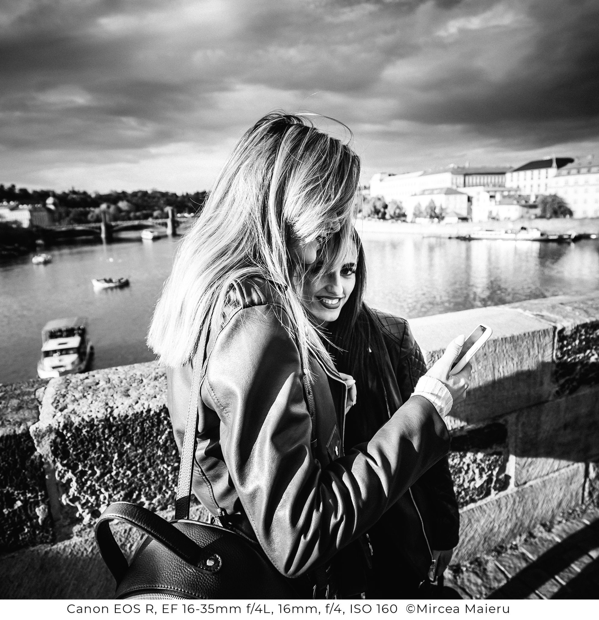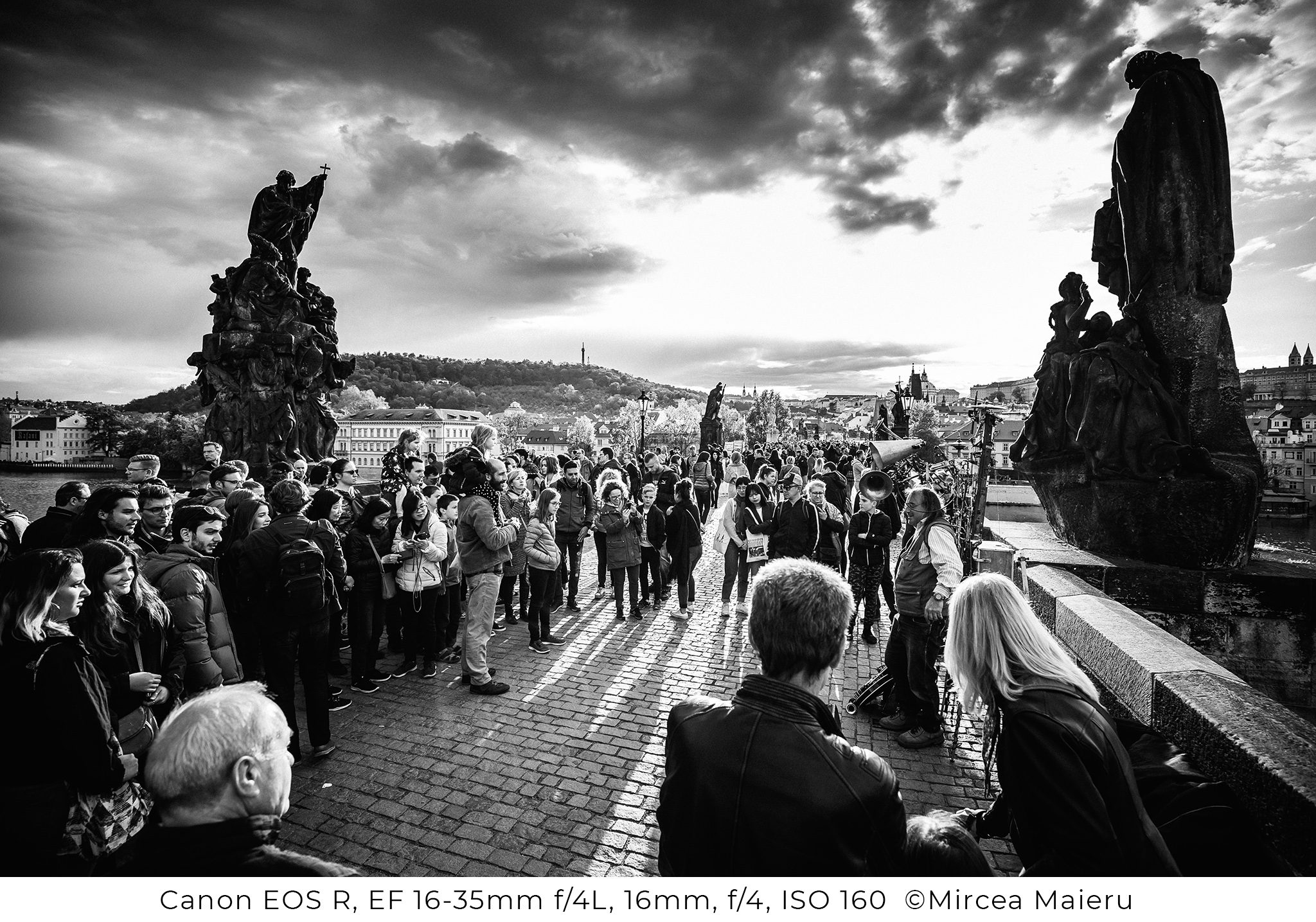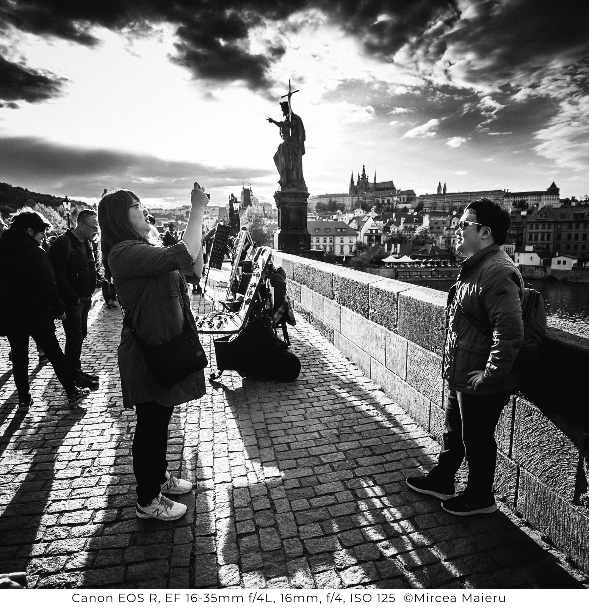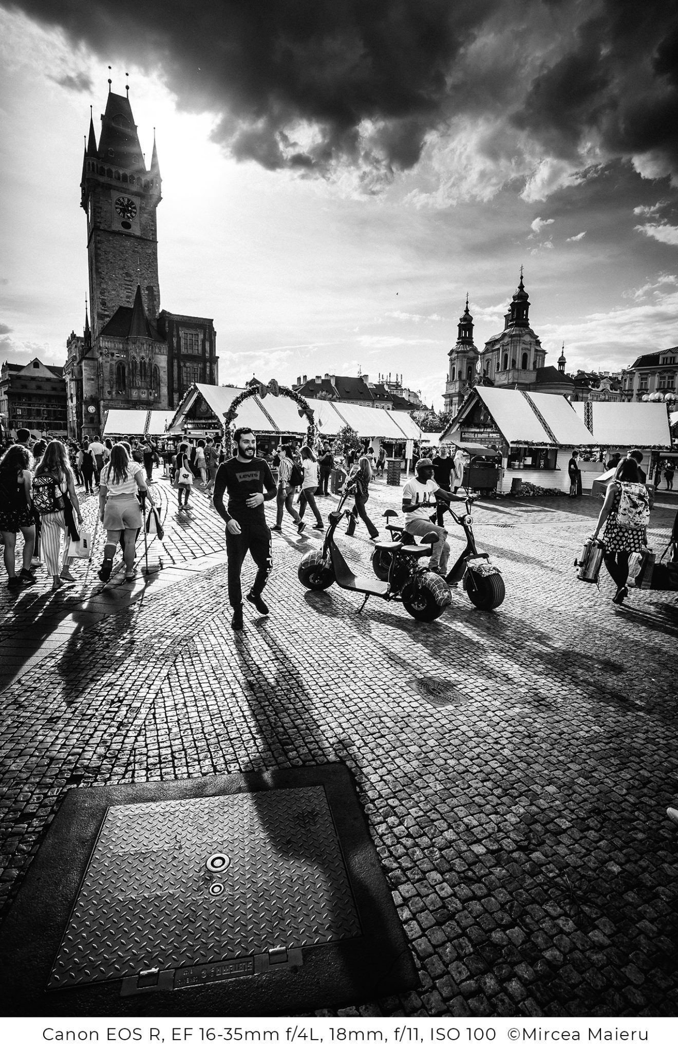 În următoarea zi, ajuns la Praga, am zis să dezlănțui întregul potențial al aparatului pentru genul de street iubit de mine și să atasez obiectivul ultra-wide EF 16-35mm f/4 L IS, împreună cu adaptorul EF-RF. Imediat am observat ca nu e nicio diferența față de aceeași combinație obiectiv plus DSLR EOS 5D IV în privința preciziei și vitezei de focalizare, ba chiar am constatat o precizie mai mare pe EOS R.