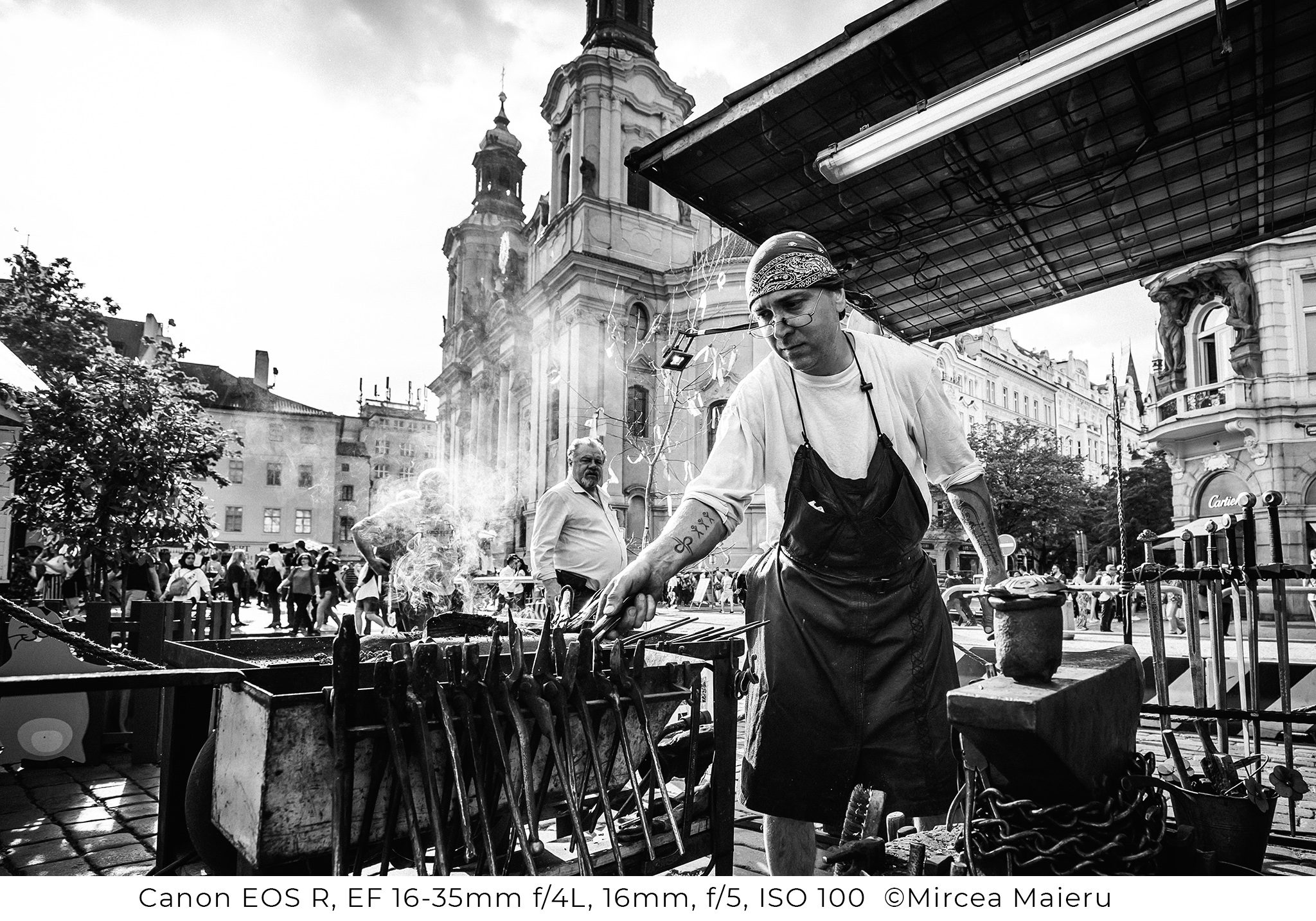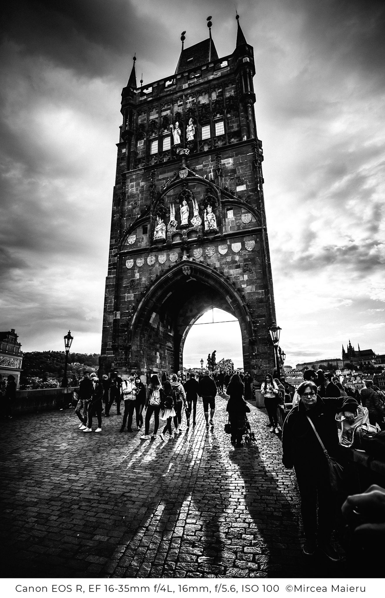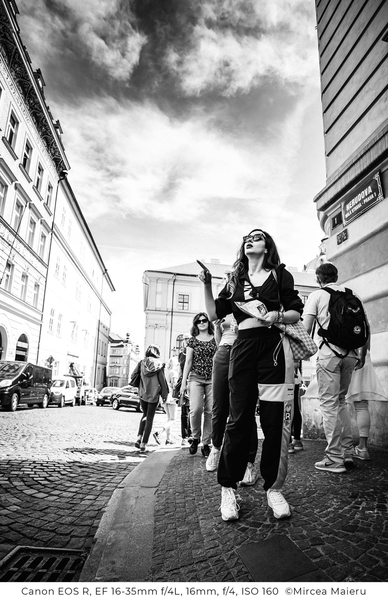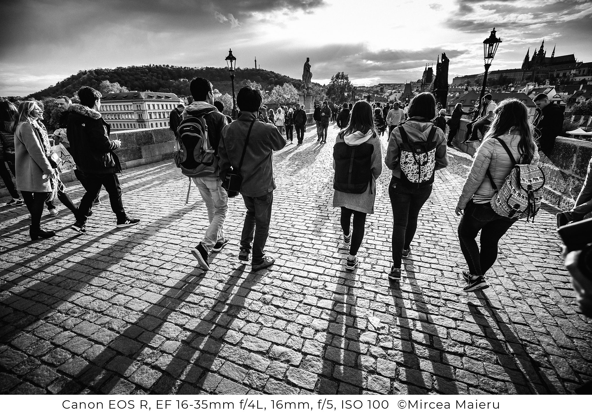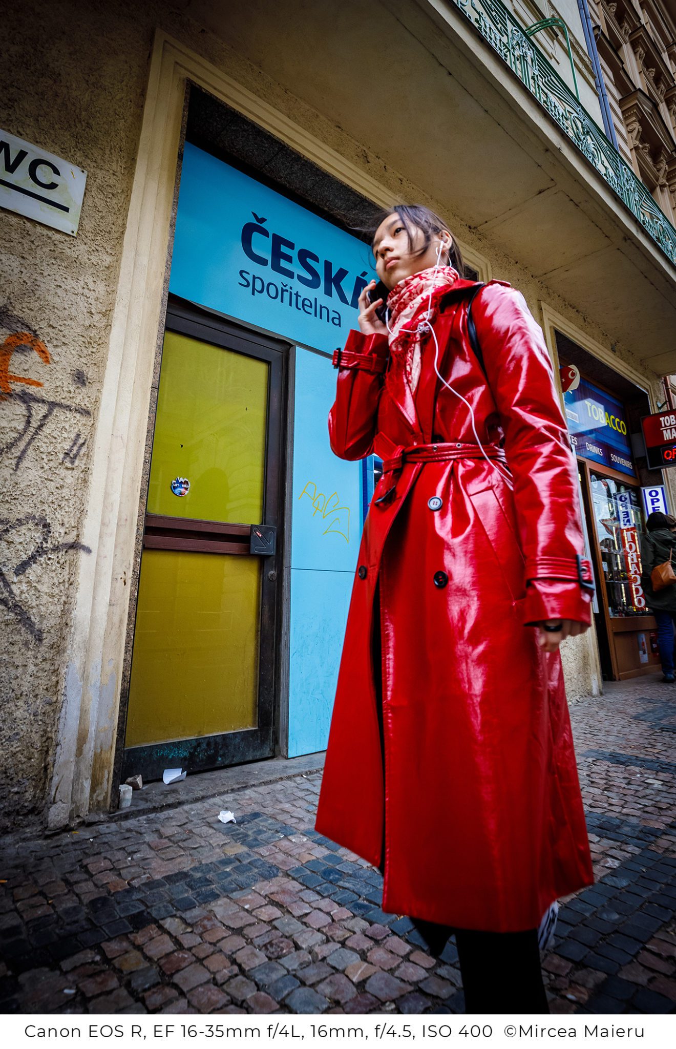 În următoarea zi, ajuns la Praga, am zis să dezlănțui întregul potențial al aparatului pentru genul de street iubit de mine și să atasez obiectivul ultra-wide EF 16-35mm f/4 L IS, împreună cu adaptorul EF-RF. Imediat am observat ca nu e nicio diferența față de aceeași combinație obiectiv plus DSLR EOS 5D IV în privința preciziei și vitezei de focalizare, ba chiar am constatat o precizie mai mare pe EOS R.