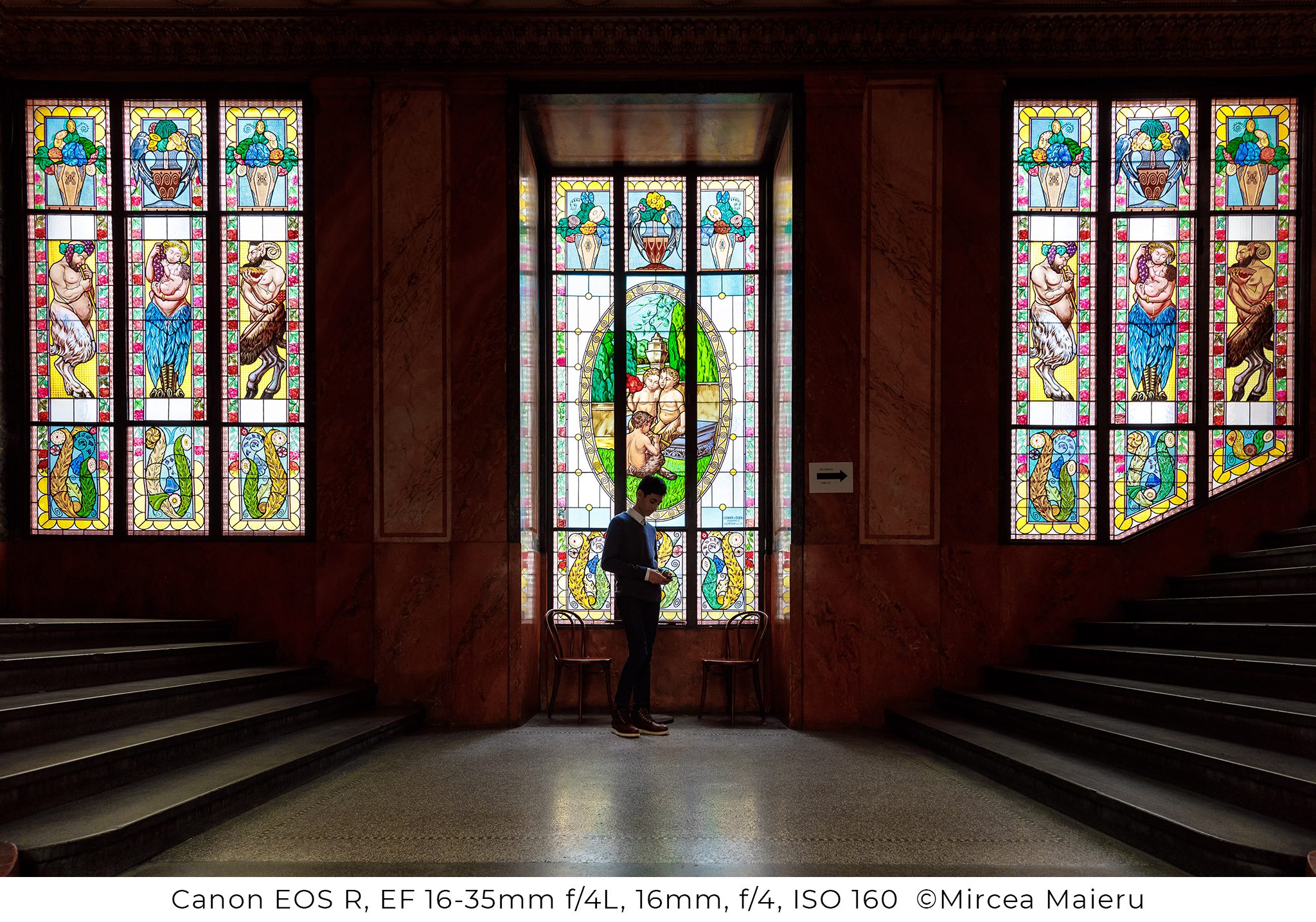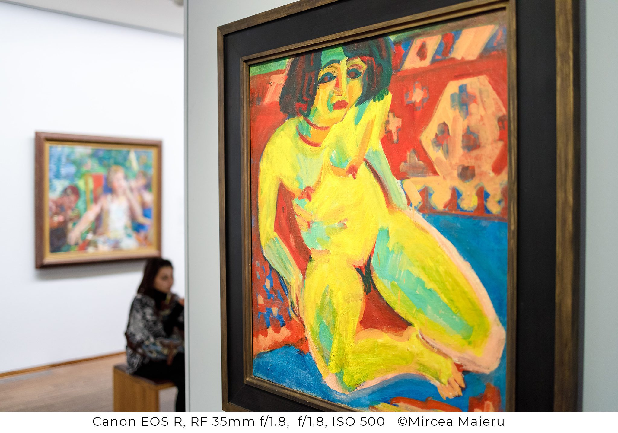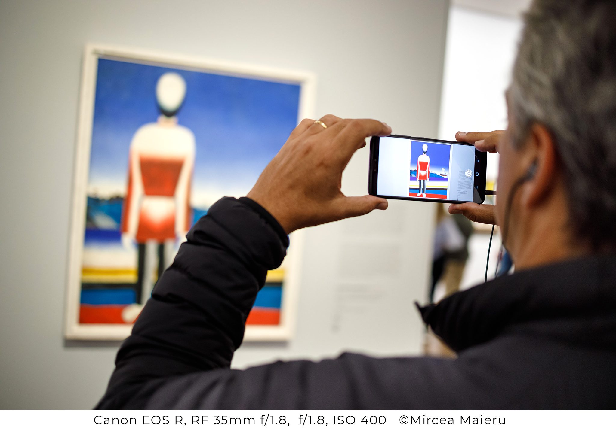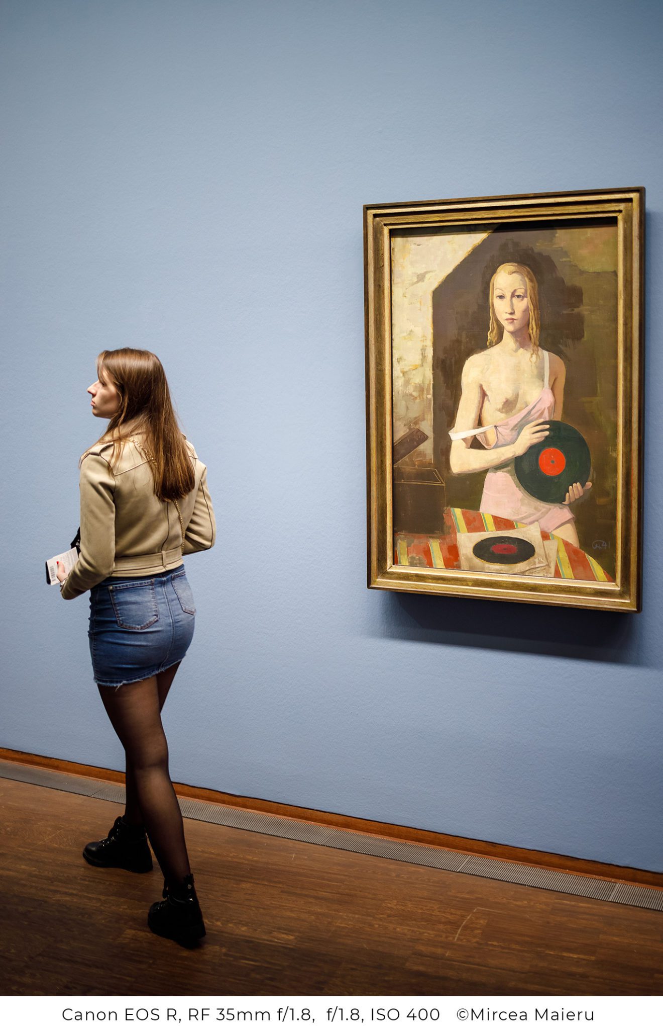 Însă mai potrivit pentru o vizită în muzeele mai slab luminate este desigur obiectivul cu focală fixă RF 35mm f/1.8. Calitățile sale optice îl fac să fie aproape obligatoriu folosit deschis la maxim sau închis cel mult la f/2.0: