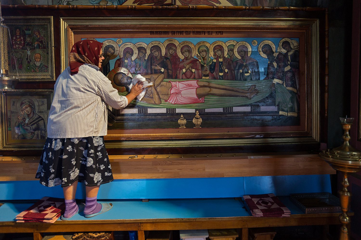 În cele două călătorii ale mele în Carcaliu, am lucrat cu două excelente dslr-uri, Sony A99 şi Nikon D810. De fiecare dată am avut un 24-70mm f/2.8, pentru a face faţă condiţiilor de lumină slabă din interiorul bisericilor din Carcaliu, un fix mai luminos, 50mm f/1.8 pentru Nikon, 55mm f/1.8 pentru Sony, precum şi un Nikkor 70-300mm f/2.8, respectiv Sony 70-200mm, f/2.8 G, pentru rarele momente în care nu mă pot apropia suficient de un subiect, din motive de spaţiu, timp, intimitate. Însă, pentru cei care încă nu şi-au achiziţionat încă un aparat foto, pot spune că, în special pentru călătoriile care nu implică neapărat şi munca la un proiect, este suficient un mirorrless, chiar şi cu un obiectiv de kit bun, solid. Un alt aspect la care a trebuit să fiu atent a fost modul Quiet, prezent la ambele body-uri mai devreme menţionate, pentru a nu deranja atmosfera din biserică, din timpul slujbei de Rusalii sau Paşte. În egală măsură am acordat atenţie şi cardurilor de memorie, SanDisk Extreme Pro fiind alegerea mea, una accesibilă ca preţ şi destul de sigură.