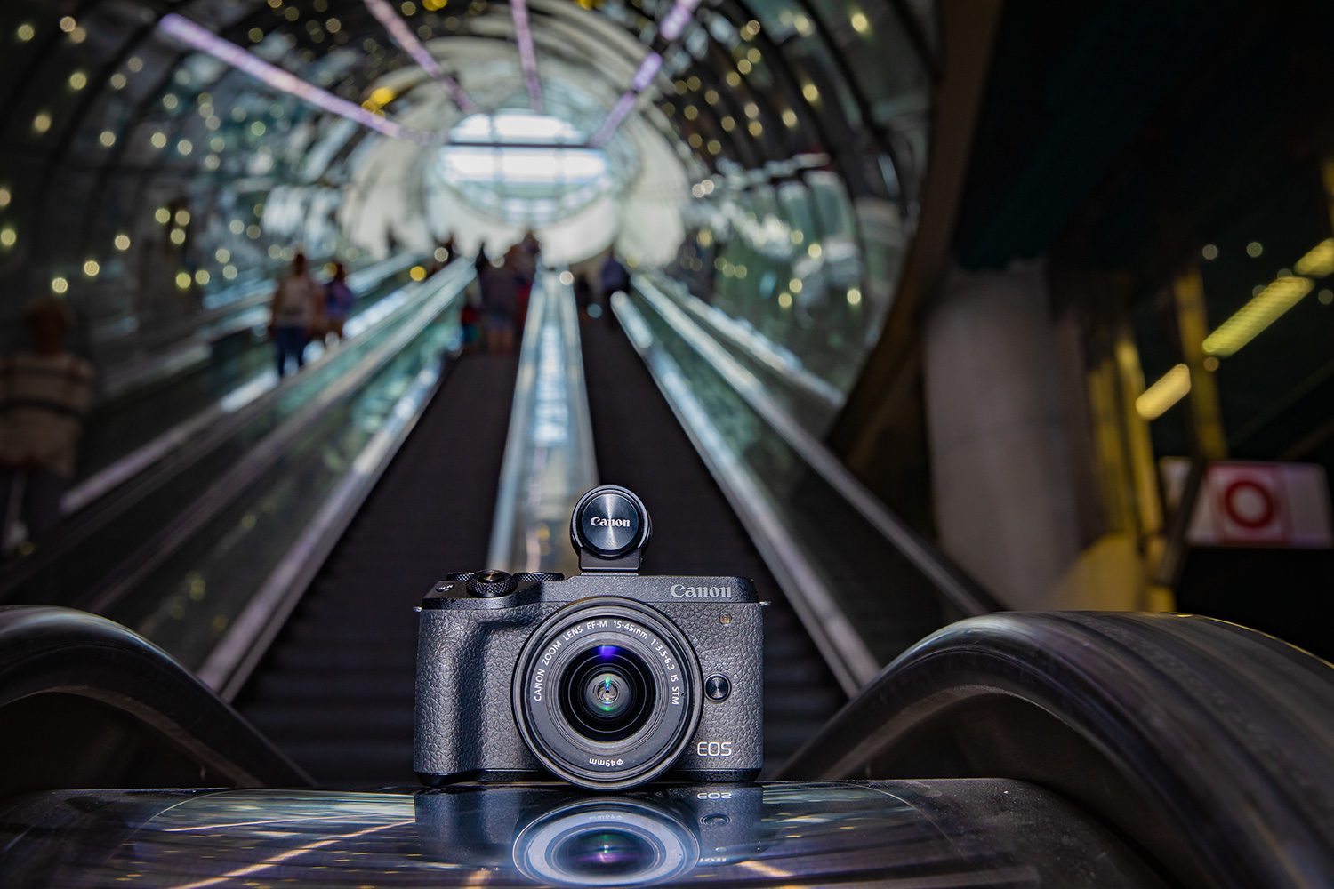 Dimensiunea compactă a modelului EOS M6 Mark II permite un stil simplu de fotografiere, necesar pentru a surprinde momente în mişcare. Discul de selectare pentru care puteţi selecta funcţia, discul de selectare principal, comutatorul de selectare focalizare automată/manuală şi butonul de pornire şi focalizare automată sunt poziţionate intuitiv pentru a obţine un timp de răspuns mai rapid, necesar pentru scenele care necesită fotografiere rapidă. Vizorul detaşabil este ridicat şi aliniat central pentru a crea spaţiu şi confort intuitiv, pentru o experienţă de fotografiere captivantă, în timp ce ecranul rabatabil ajută la realizarea de fotografii mai creative şi oferă acces la numeroase funcţii video.