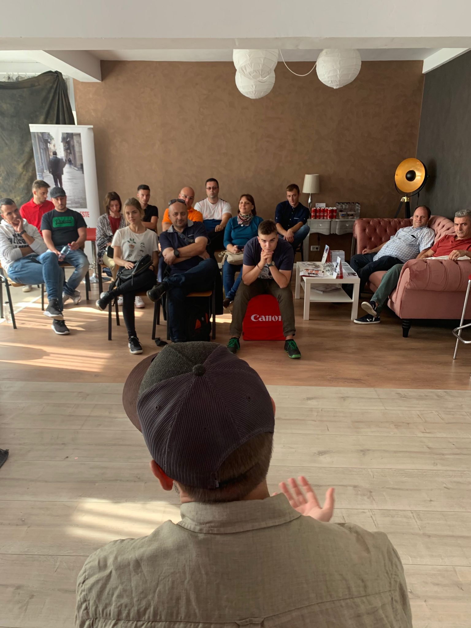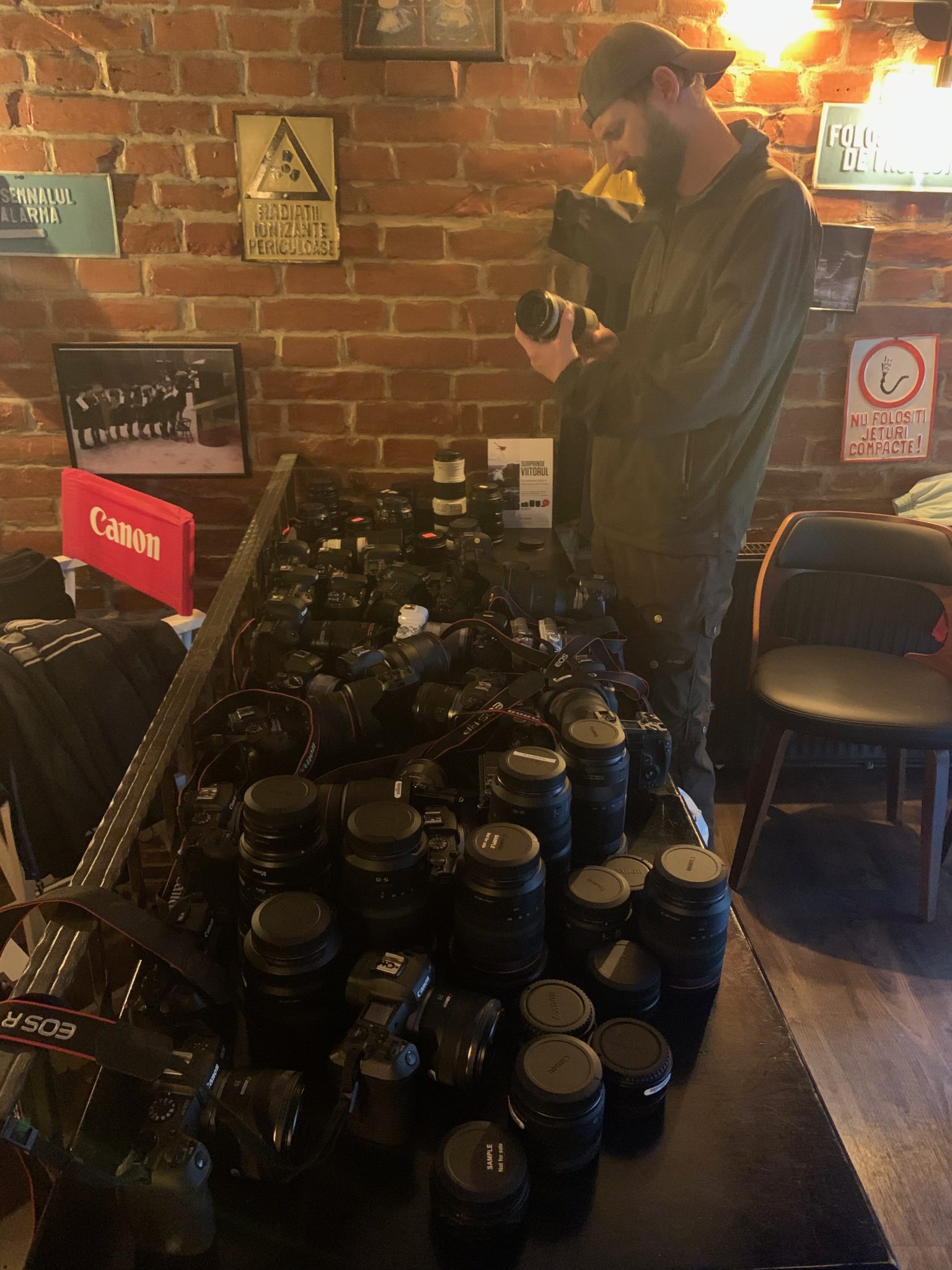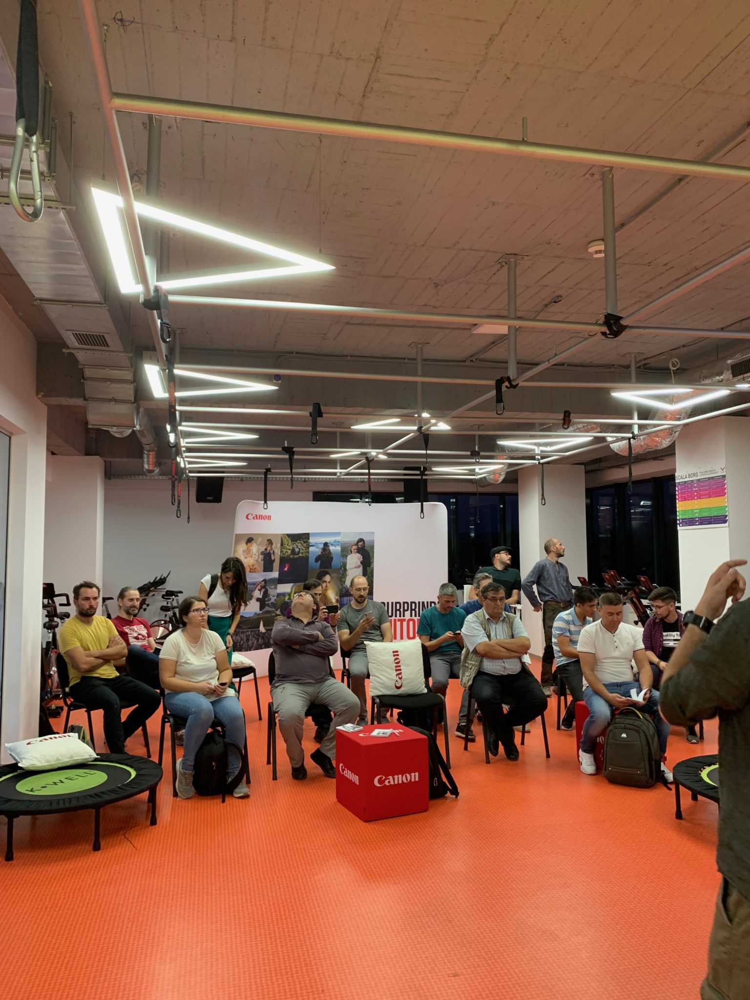 La Brașov ar fi trebuit să testăm aparatele la Centrul sportiv Olimpia, la o partidă de tenis de câmp, însă vremea a fost potrivnică, turna cu găleata. Aparatele EOS R/RP rezistă chiar și în aceste condiții, dar am trecut la Planul B și ne-am dat întâlnire cu fotografii din Brașov (și nu numai, am avut participanți din Miercurea Ciuc, Bușteni, Predeal) la Kafe Pub, unde am discutat într-un cadru relaxat despre ce beneficii îți oferă folosirea unor aparate cu senzor Full-Frame, care sunt obiectivele ideale pentru aparatul tău și mai ales pentru genul fotografic abordat de fiecare. Apoi – deși vremea nu a ținut cu noi – au fost mulți fotografi care au luat aparatele la o plimbare fotografică pentru a le pune la încercare.