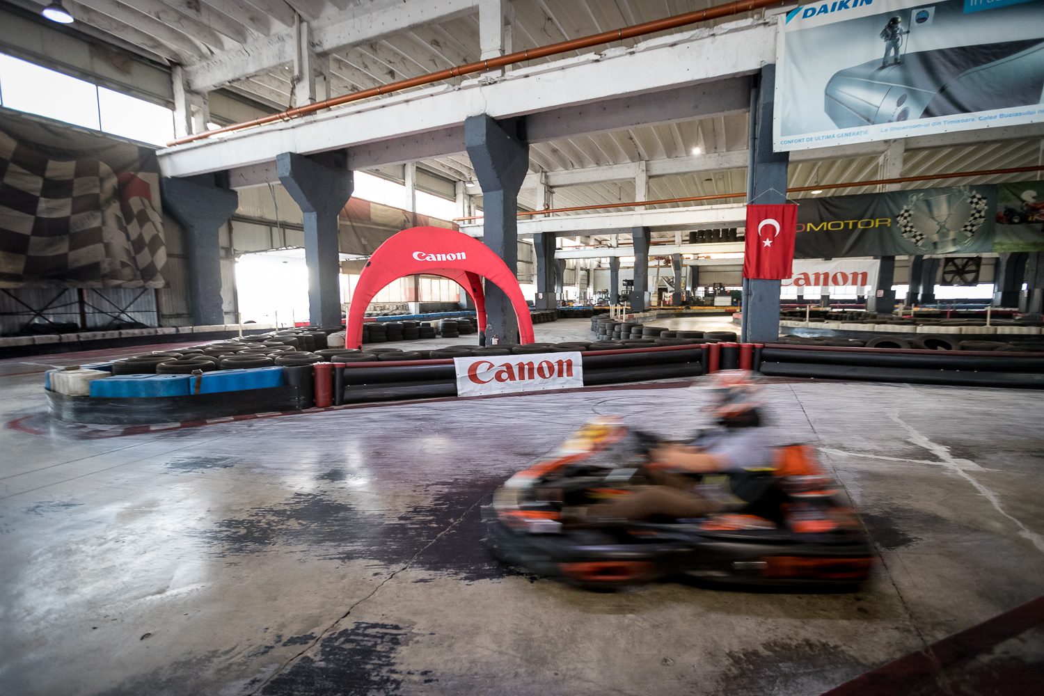 În Timișoara, sesiunea de testare a echipamentelor Canon a avut loc la Red Motor. Complexul Red Motor oferă ocazia practicării kartingului de agrement într-o locație unică în oraș. Pista a fost a noastră, pe lângă testat aparate și obiective, fotografii participanți s-au putut lua la întrecere în karturile pus ela dispoziție de cei de la clubul Red Motor.